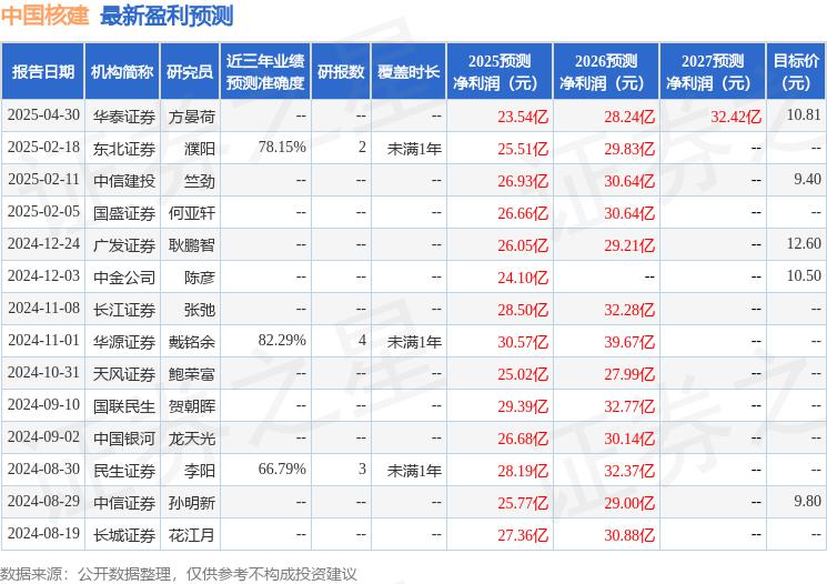 天风证券(601162)股份有限公司鲍荣富,王涛,任嘉禹近期对中国核建(601611)进行研究并发布了研究报告《核电工程订单收入同比高增,充分受益核电景气上行》,给予中国核建增持评级。